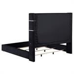 • Queen upholstered wingback bed in black corduroy offers a bold textured feel • Integrated flame visualizer provides sixteen color options for ambient lighting • Remote control allows easy adjustment of lighting effects and mood settings • Foam cushioning delivers supportive comfort for everyday relaxation • Wingback silhouette adds a bold and contemporary bedroom presence • Sturdy frame construction ensures reliable support and long-term durability